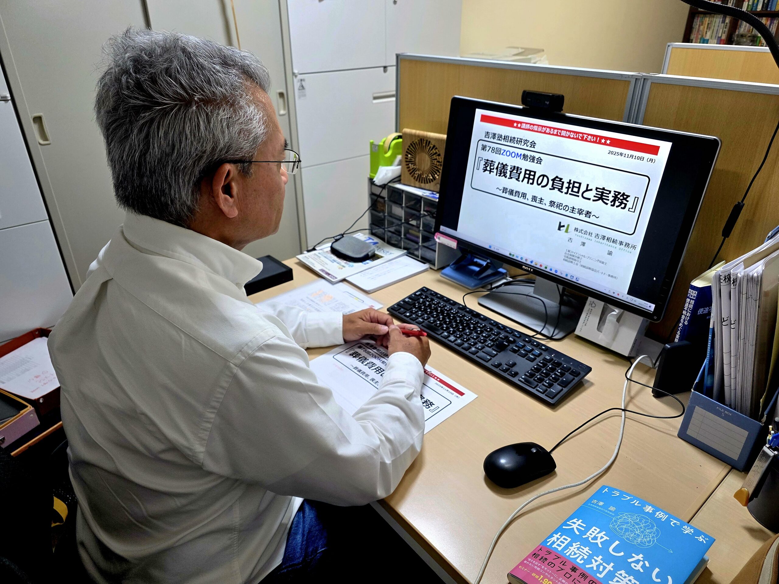 令和7年11月10日(月)、吉澤塾相続研究会<第78回ZOOM勉強会>を実施しました。