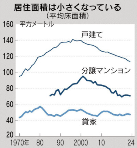 また、マイホーム取得しようと思っても、地価資材高騰人件費の上昇等により、都心部における新築マンション価格は1億円超えてしまっています。そのため、一般世帯手が届く金額マンション価格抑えるために面積を小さくせざるを得ない事情も生じています。