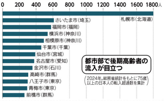 令和7年11月16日(日)付の新聞に、『終の棲家 都会に求める~75歳以上の移住3割増~医療充実・子の近くに』の記事がありました。