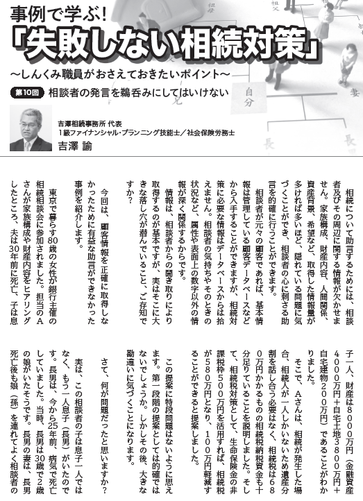 最終回となる第10回目・2026年1月号(2026年1月10日発売)では、『相談者の発言を鵜呑みにしてはいけない』と題し、顧客情報を正確に取得しなかったために有益な助言ができなかった事例を紹介しました。